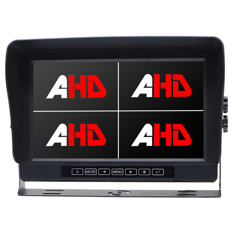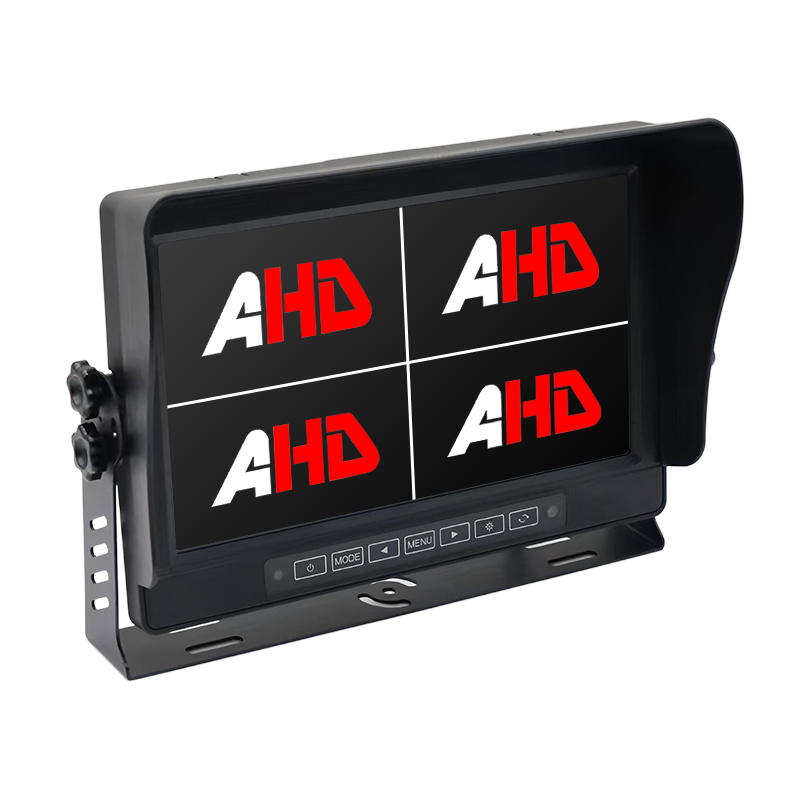 Kamera cofania z funkcją wykrywania martwego pola AI Wbudowany alarm dźwiękowy i świetlnyCarleader10,1-calowy wodoodporny IP69K 4-kanałowe wejścia AHD Poczwórny wyświetlacz Przyciski dotykowe Monitor pojazduwykonany z obudowy ze stopu aluminium, wodoodporności IP69K i konstrukcji z przyciskami dotykowymi gwarantuje dobrą obsługę monitora w trudnych warunkach otoczenia. Współczynnik 16:9 i rozdzielczość 1024 x 600 zapewniają wyraźny obraz otoczenia pojazdu. 4-kanałowe wejścia sygnałowe AHD z przewodami wyzwalającymi, wejścia AHD kompatybilne z kamerami CVBS / AHD 720P / AHD 1080P, automatyczny przełącznik NTSC / PAL.