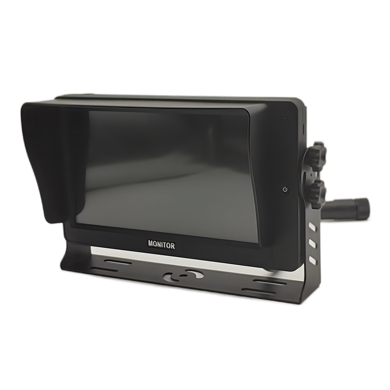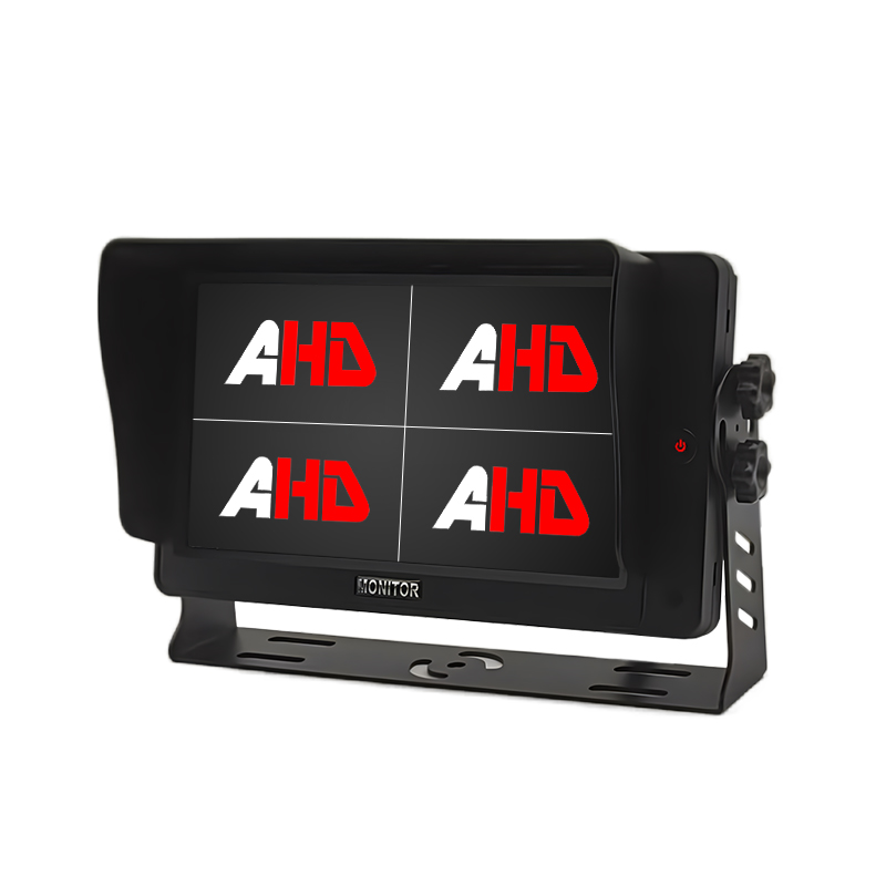 Kamera cofania z funkcją wykrywania martwego pola AI Wbudowany alarm dźwiękowy i świetlnyCarleader 7-calowy monitor AHD o wysokiej jasności i poczwórnym widoku do pojazdów ciężarowych o dużej ładowności, monitor AHD o wysokiej rozdzielczości z 7-calowym ekranem dotykowym. Obsługuje wiele wejść wideo, umożliwiając użytkownikom jednoczesne oglądanie obrazu z maksymalnie czterech kamer.Monitor może być używany do różnych zastosowań, w tym do celów bezpieczeństwa i nadzoru.