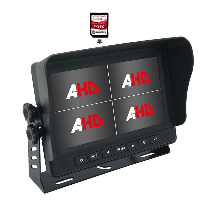 Monitory Quad AHD: Nasze monitory Quad AHD przenoszą bezpieczeństwo pojazdu na wyższy poziom. Systemy te, zdolne do jednoczesnego wyświetlania i nagrywania czterech kanałów wideo, oferują pełny widok przestrzenny. Dzięki wielokanałowym trybom wyświetlania i niezależnej archiwizacji plików kierowcy mogą z łatwością monitorować tył, przód i bok swojego pojazdu.