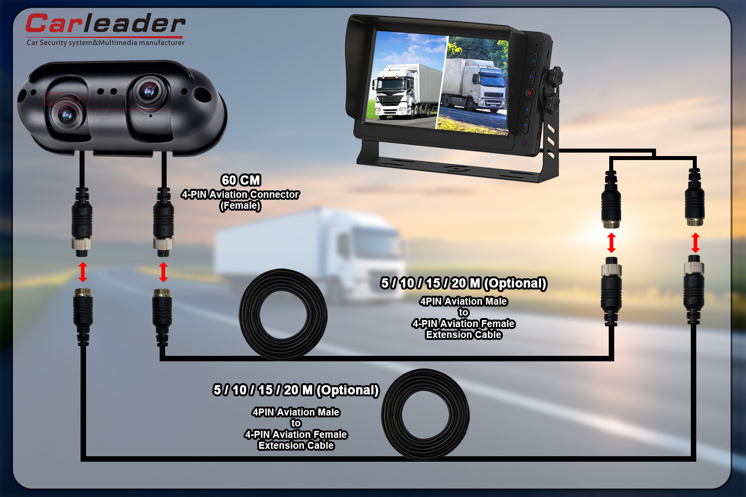 Carleaderoferuje dwa różne rozwiązania okablowania dla kamery cofania Starlight AHD z dwoma obiektywami o dużej wytrzymałości, aby dopasować się do różnych potrzeb w zakresie okablowania: