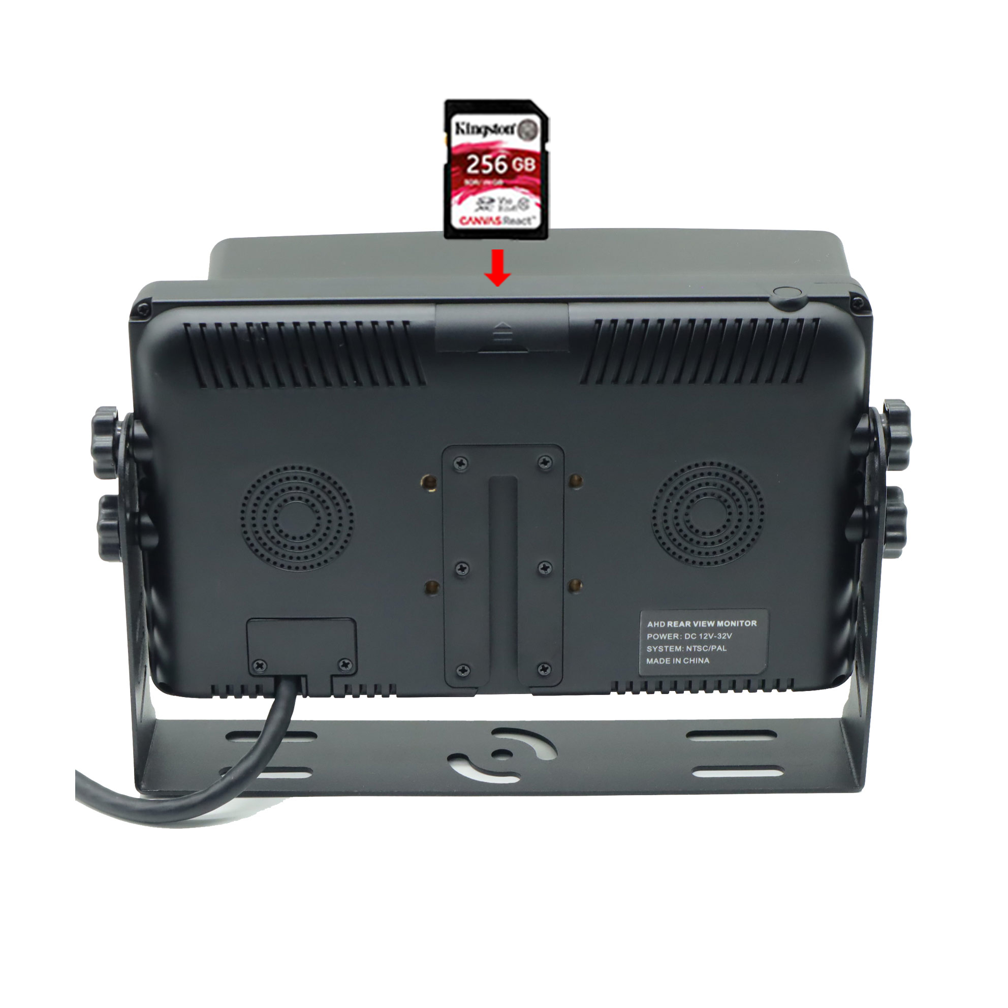 Carleader 7-calowy 4-kanałowy monitor AHD z wyświetlaczem Quad View Monitor obsługuje funkcję nagrywania DVR, z gniazdem karty SD z tyłu monitora, maksymalna pojemność wynosi do 256 GB. Funkcje z funkcją nagrywania w pętli umożliwiają automatyczne nagrywanie i odtwarzanie obrazu z kamery.